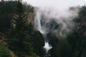 A waterfall is an area where water flows over a vertical drop or a series of steep drops in the course of a stream or river.